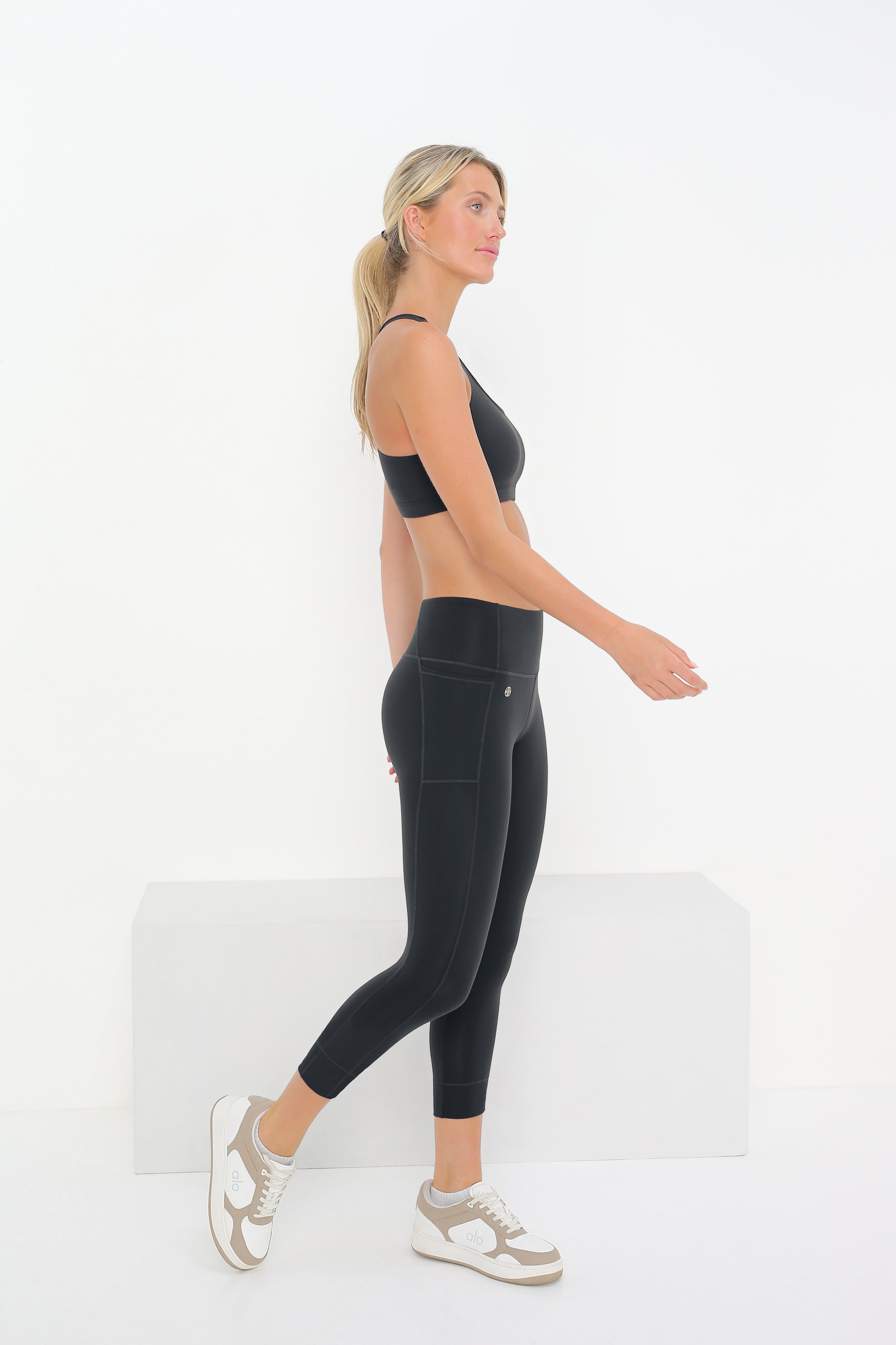 The Revive Ank tight combines thoughtful engineering with refined comfort. Perfectly positioned side panels with dual functional pockets enhance both aesthetics and practicality.